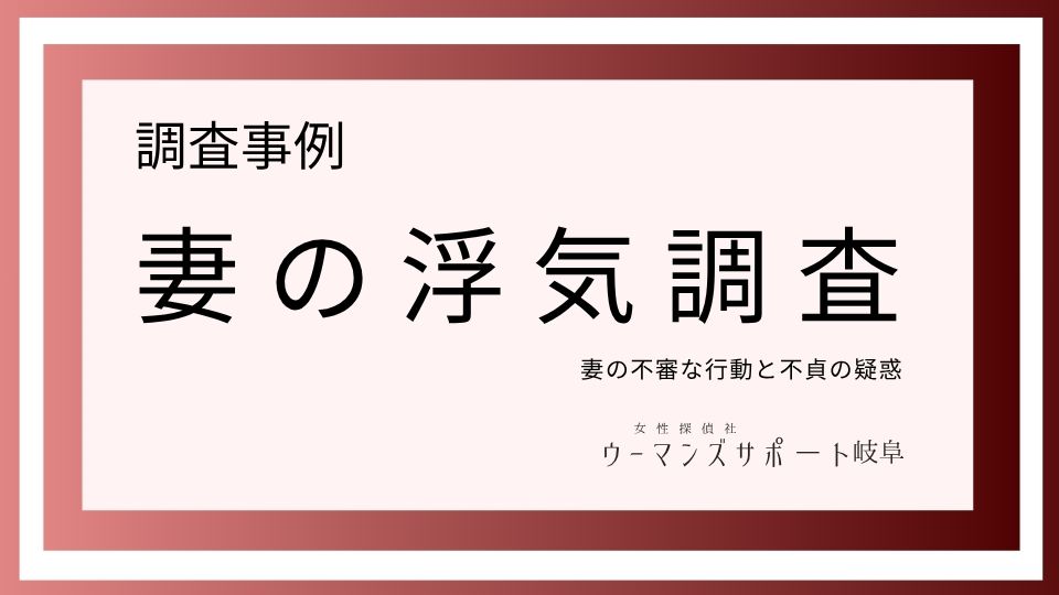 岐阜市にお住まいの40代男性からのご相談です。30代の奥様、小学生と幼稚園のお子様と市内の分譲マンションに暮らす依頼者様は、奥様の行動に深い不信感を抱いていました。奥様は岐阜市内の総合病院で事務職として9時から17時まで勤務しており、休日は土日祝日、車で通勤されています。